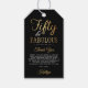 Say thank you in style with these sophisticated "Fifty & Fabulous" birthday party favor tags. Featuring a striking high-contrast design, these tags pair a deep black background with a shimmering faux gold foil script that exudes elegance and luxury. The template wording is fully customizable, allowing you to easily update the name and add a thank you message on the back. Whether you’re hosting a formal dinner at a hotel or a chic cocktail soirée, these thank you tags are the perfect finishing touch for a memorable 50th milestone celebration.