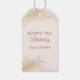 Celebrate a milestone 70th birthday with these elegant personalized gift tags. Featuring a beautiful design with sparkling gold glitter accents and delicate botanical illustrations on a cream background, these tags add a touch of sophistication to any birthday gift. Customize with the recipient's name for a truly special touch. Perfect for party favors, gift bags, or as a charming addition to your wrapped presents. Make their 70th birthday unforgettable with this stylish and thoughtful detail.