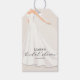 A bride in her wedding gown and veil with your details in chic lettering on a pale taupe background, or any color you choose, these bridal shower favor tags are perfect for your bridal shower. MATCHING items in our collection.