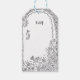 Add a touch of enchantment to your wedding favors with these elegantly minimalist gift tags. Featuring a delicate, hand-drawn illustration of a whimsical garden door surrounded by wildflowers, this design brings a sophisticated 'Fine Art' aesthetic to your celebration. The soft, faded lines on the reverse side offer a romantic and airy feel. These tags are perfect for garden, woodland, or modern monochrome weddings. Easily customize with your initials for a truly personal touch.