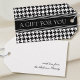 Eleve a dádiva e adicione um toque de elegância com este design de etiqueta de presente sofisticado. Um modelo elegante que apresenta o icônico padrão xadrez de cão, combinado com listras contrastantes e tipografia clássica. Personalize-o adicionando um nome de família ou mensagem personalizada de sua escolha. Este design é perfeito para presentes de agradecimento, celebração de aniversários, aniversários de casamento, feriados, presentes de casa nova e muito mais! Cores impressas: preto e branco.