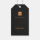 O elegante couro preto de luxo aplaude a tipografia favorece a etiqueta de presente com um quadrado monograma e assinatura personalizada de nome falho dourado.