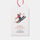 Divertidas Tags de Presente de Feriado Feliz Esqui Aquarela Pintada à Mão.