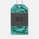 Etiqueta de presente com mensagem personalizável ILY. Acentos metálicos, rosa fantasia.