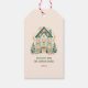 Dê o dom da magia de feriado confortável com nossa etiqueta festiva. Esta design adorável apresenta uma charmosa cabana de inverno. Adicione um toque pessoal incluindo seus nomes e ano.