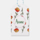 Flores podres em vermelho, surreal, cor d'água, florescem uma etiqueta de presente personalizada.