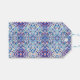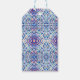 Uma etiqueta de presente espantosa adornada com um intrincado padrão geométrico em tons de azul, rosa e branco, com delicados sotaques florais. Perfeito por adicionar um toque de elegância ao seu presente embrulhando com o seu design.