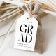 Adicione um toque personalizado aos seus favores de festa de graduação com esta etiqueta de presente de graduação moderna! A etiqueta do presente exibe "grad" em letras pretas em negrito com um fundo branco sólido. Personalize as etiquetas de graduação em preto e branco com o nome do graduado, escola e ano de graduação. As etiquetas de favor são perfeitas para festas de graduação tanto do ensino médio quanto da faculdade!
