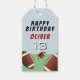 American Football Balls Happy Birthday Gift tag. Presente de aniversário feliz no tema do futebol. Adicione seu nome e sua idade. Excelente para crianças que amam futebol e esportes.
