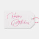 É um texto elegante e moderno do programa de caligrafia Feliz de Aniversário com etiqueta de presente personalizada de cor rosa quente.