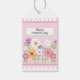 Adicione um toque especial aos presentes do Dia das Mães com esta linda etiqueta de presente com flores coloridas, um passarinho fofo, rickrack, bolinhas e texto personalizável. Este design é doce e feminino, e será um belo complemento para as embalagens do Dia das Mães. Modifique o texto na frente e no verso para atender às suas necessidades.