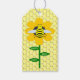Este fantástico conjunto de etiquetas de presentes apresenta uma imagem gráfica de um belo abelhão amarelo com listras pretas, olhos, antenas e pernas. Tem asas bonito, azuis e brancas. A abelha está sentada no meio de um girassol amarelo-ouro. A flor tem um caule verde e três folhas. A mensagem "dia feliz das abelhas" aparece espalhada pelas três folhas. O fundo é composto por um padrão amarelo de mel. Há texto personalizável no verso para que você possa personalizar suas etiquetas de presentes.