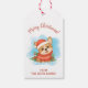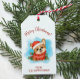 Uma ilustração fofa de Corgi decora essas etiquetas de presente de Natal.