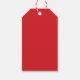 Etiqueta de presente bonita com três gnomos nórdicos com chapéus e tunicados do estilo escandinavo, vermelhos e verdes, sob flocos de neve vermelhos, verdes e dourados. "Feliz Natal" está escrito em um roteiro vermelho de tendências. Adicione o seu nome à tipografia vermelha moderna.
