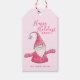 Crie etiquetas de presente de Natal rosa personalizadas únicas com um design bonito que apresenta um ditado Feliz Feriados e um gnomo alegre em roupa cor-de-rosa. É fácil adicionar um ano e seu nome familiar usando texto de modelo.