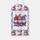 Gnomos de inverno brancos, de cor aquática, em vermelho e azul, com etiqueta de presente de Natal.