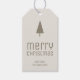 Adicione um toque moderno ao seu embrulho de Natal com esta etiqueta de presente de Natal na moda, com um design festivo de árvores de Natal abstrato, flocos de neve delicados e estrelas elegantes nas costas. A frente mostra uma saudação animada de "Feliz Natal" e espaço para personalizar com seu nome de família ou texto personalizado. Perfeito por adicionar um final atencioso e personalizado a presentes para amigos, familiares ou clientes nesta temporada de férias.