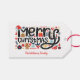 Uma coleção divertida de itens de feriado e as palavras MERRY CHRISTMAS em uma fonte divertida estão na frente dessas etiquetas de presentes e seu nome ou mensagem na parte inferior ou adicione qualquer coisa no verso. Excelente para etiquetas de favoritos de partidos, etiquetas de presentes, presentes de comida caseira e muito mais.