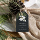 As etiquetas de presentes de Natal festivas apresentam um rico fundo negro de carvão com flores brancas em cascata, folhas verdes e folhagem botânica. Personalize com seu cartões de natal personalizado (mostrado com "Feliz Natal") e seus nomes ou nome da família. Vazio no verso para escrevendo manualmente o nome do destinatário do presente. Um design de Natal moderno e elegante que certamente agradará a todos na sua lista de presentes!