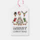 Espalhe a alegria de férias com esta engraçada etiqueta de presente de Natal com três gansos festivos! Um veste um chapéu de cima e um cachecol, o outro é envolto em luzes coloridas sob um chapéu de Papai Noel, e o terceiro esportes de renas e um cachecol verde. Um jeito caprichoso de decorar seus presentes de Natal.