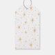 Etiquetas de presentes de Natal elegantes e modernas, com "Feliz e Brilho", apresentadas num script branco, com letra branca, enquadrado por uma borda de estrelas brancas com fundo dourado. Personalize a feliz e as etiquetas brilhantes de presentes adicionando seu nome.
