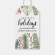 Celebre este feriado com folhagem de férias com folhas e bagas com etiqueta de presente. É usada tipografia moderna e de script. Personalize a etiqueta com uma mensagem pessoal e um nome comercial. Excelente para oferta da empresa ou uso da etiqueta para rótulos de vinho.