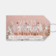 Esta design de Natal mostra uma cena de inverno esbranquiçada com três casas cor-de-rosa cobertas de neve. As casas, com portas e janelas ouros, estão cercadas por árvores e pinecones carregados de neve, criando uma atmosfera festiva e aconchegante. O fundo cor-de-rosa macio com flocos de neve brancos a cair adiciona um toque de charme e calor à etiqueta.
