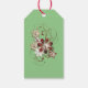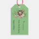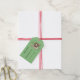 Etiqueta de presente vermelha e verde com decoração floral de férias.