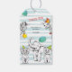Etiqueta de presentes do 5 Anniversário com divertidas ilustrações bonitinhas de animais desenhadas no estilo de desenho de lápis.
