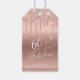Elegante e chic personalizaram 60ª festa de aniversário a favor de etiquetas de presente com "60 & Fabuloso" em um script branco de na moda, um fundo de rosa dourado e brilho de rosa dourado a partir do topo.