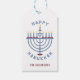 Estas bonito etiquetas de presentes têm uma menorah e as palavras "Feliz Hanukkah" com um padrão Star de David nas costas. Use a modelo para personalizar. Consulte os convites de festas correspondentes aqui: https://www.zazzle.com/hanukkah_party_funny_whole_latke_fun_invitation-256781977102628379