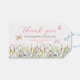 Obrigado de água da borboleta de flores silvestres.. você dá um toque elegante para o obrigado que você favoritos para festas para o seu chá de fraldas. Jardim de flores de aquarela com um obrigado cor-de-rosa, personalização de detalhes, nome e data faz dele seu. Eleve seu chá de fraldas com etiquetas de presentes da Coleção de Chás de fraldas de Flor Selvagem de Borboleta Branca no compro de Designs de Coleta.