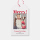 Personalize suas etiquetas de presentes de feriado este ano com uma foto favorita e seus nomes. Este design apresenta texto "Feliz!" ousado juntamente com um modelo de texto para personalizar com o seu nome de família ou o nome de um indivíduo. Carregue a foto desejada no lugar da foto de amostra mostrada no modelo de design.