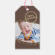 Personalize seus presentes de Natal com estas modernas etiquetas de presentes de Natal marrom e bolinhas com uma saudação especial no verso. Personalize com sua própria foto da família favorita e mude o texto conforme necessário.