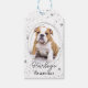 Puppy Pawty! Adicione o toque final ao seu aniversário de filhotes ou cães com esta elegante foto de animais de estimação prateada e guardanapos de festas de estrelas reluzentes. Adicione a foto favorita do seu filhote e personalize com nome, idade de aniversário! Veja a coleção de aniversário do Puppy Dog para fazer convites de aniversário, decoração de festas, favores e presentes. COPYRIGHT © 2020 Judy Burrows, Black Dog Art - Todos Os Direitos Reservados. Foto Personalizada Cão-de-Aniversário Glitter Silver Stars Gift Tags
