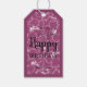 Flores de hibisco branco esboçadas num fundo de framboesa, estas etiquetas de presentes são perfeitas para dar presente de aniversário. O papel de embrulho na nossa loja.