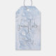This frozen winter "a little snowflake is on his way" boy's baby shower gift tag features faux/fake silver snowflakes on a light blue background in watercolor. Personalize it for your needs. You can find matching products at my store.