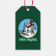 A cute snowman on gift tags for Christmas. Use "Personalise this template" to change the "Merry Christmas!" text and create a unique, customized item. Add a finishing touch to your Christmas gifts with these tags, featuring a cartoon of a jolly snowman with a carrot nose and coal eyes, dashing through the snow on skis, in woolly winter hat and tartan scarf. An upbeat design for Xmas.