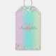 Etiqueta de presente Holográfica Unicorn - Uma etiqueta de presente colorida de tendência com turquesa mista, cor-de-rosa e mauve e brilho amarelo claro. Você pode personalizar esta etiqueta de presente adicionando seu nome e suas iniciais.