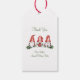 Gnomo Feriado bonito pendurado com a etiqueta de presente. Típica divertida com pequenos gnomos festivos sentados num galho de pinheiros. Os suprimentos de grupos coordenadores estão disponíveis no MetroEvents no Zazzle.