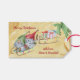 Etiquetas de presentes personalizadas para crianças com textos editáveis e ilustração dos gnomos de natal.Este design de aquarela bonitinho tem dois gnomos se divertindo tremendamente deitando pela areia no seu trenó puxando um trenó cheio de presentes. Tem uma tipografia balbuciosa e uma formulação editável de cheio.