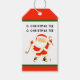 Etiquetas de presentes de Natal com tema de golfe, com Papais noeis e as palavras: "O Natal tee". Adicione o nome para personalizar facilmente.
