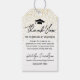 Obrigado de graduação, você favorece as etiquetas com furos e fios que apresentam um texto personalizado negro moderno que pode ser totalmente personalizado com o nome do formando, a escola, o ano de aula e a mensagem do obrigado. Inclui um sotaque de boné de formando com design de fundo de confetti dourado.