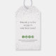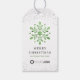 As etiquetas de presentes de Natal personalizadas apresentam um floco de neve decorativo de cor aquática verde e falso cintilação prateada com o logotipo da empresa e outras informações no verso, modernos e tendências.
