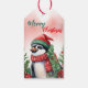 Etiqueta Para Presente Grinalda engraçada de Natal pinguim papai noel