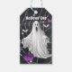 Humor de Halloween com fantasma, morcegos, abóbora roxa, teia aranha. Texto personalizável. Escolha a cor do seu fio. Divirta-se e fique seguro.