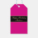 Happy Birthday Script Name Pink Black Gold Gift Tag