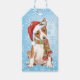 Celebre a temporada de festas com um presente decorado com uma etiqueta de presente com um filhote de Basenji bonitinho vestindo um chapéu de Papai Noel e cachecol em meio a flocos de neve! Excelente por dar à família e amigos que amam Basenji.