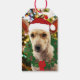 Uma pintura digital de um filhote pronto para o Natal com uma coroa, chapéu de Papai Noel e uma árvore decorada.