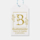 Uma etiqueta de presente elegante e moderna apresenta uma moldura botânica desenhada à mão em dourado com a letra B botânica no centro. Personalize com o nome do casal e/ou data